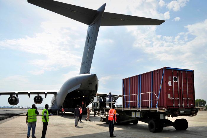 South Sudan: ADF Globemaster transport plane flies supplies into South Sudan as ceasefire talks delayed