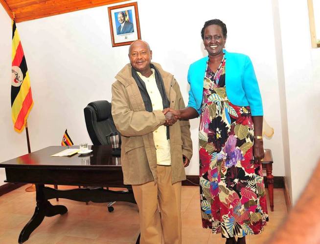 Ugandan President Yoweri Museveni has held a meeting with Mrs. Rebecca Garang, the wife of the late Sudanese People’s Liberation Movement(SPLM) leader Gen John Garang.