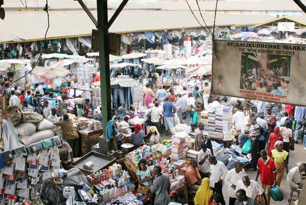 Traders at St. Balikuddembe Market in Kampala. Remittances by Ugandans living and working abroad dropped from $225 million in 2011 to $187 million in 2012. File photo