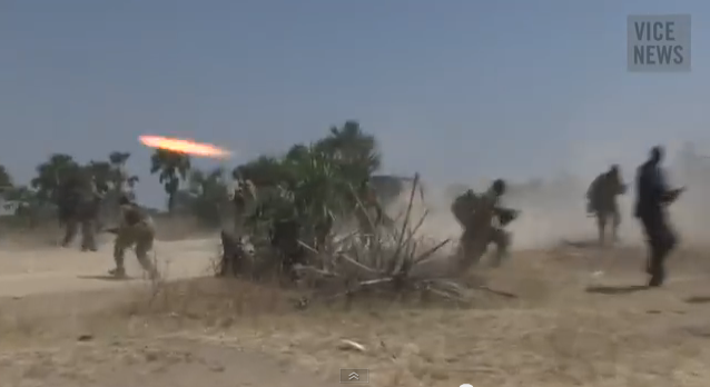 SPLA loyal forces retreating on Juba-Bor road after falling into series of ambushes and defeats in January, 2014. Photo: VICE NEWS|youtube