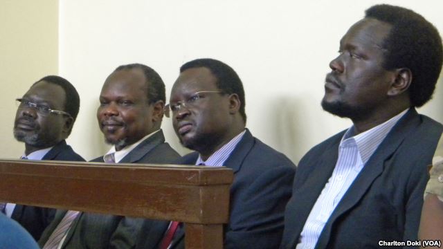 Defendants (L-R) Oyay Deng Ajak, Pagan Amum, Majok D’Agot Atem, and Ezekiel Lol Gatkuoth.
